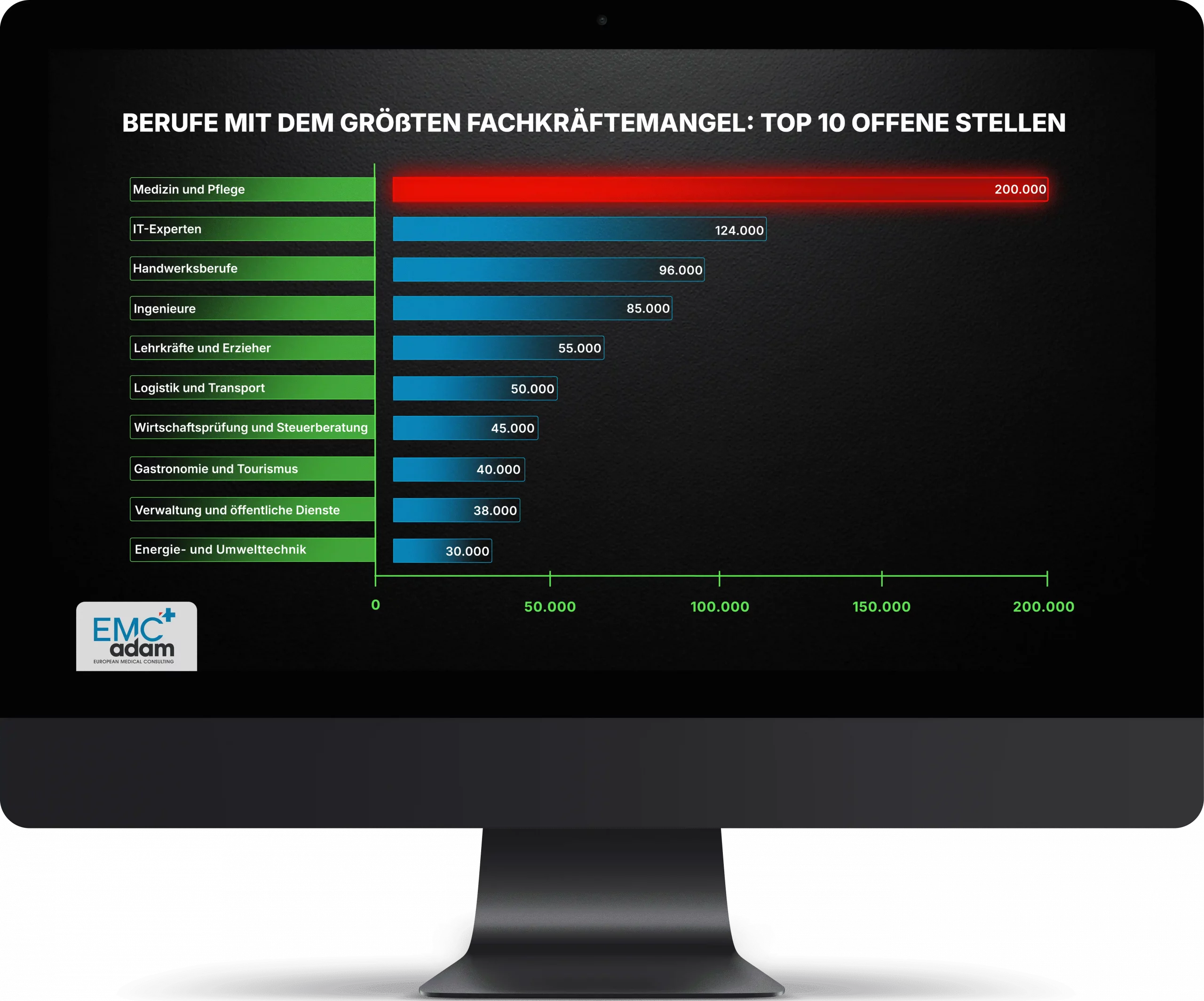 “Der Fachkräftemangel im deutschen Gesundheitswesen spitzt sich weiter zu: Im Jahr 2035 können knapp 1,8 Millionen offene Stellen nicht mehr besetzt werden, weil qualifizierte Kräfte fehlen. Das entspricht einem Engpass von 35 Prozent.ˮ